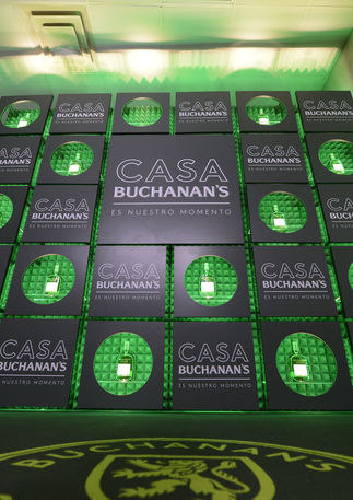 Buchanan's joined J Balvin on his international Energia Tour. The client wanted to create a space dubbed Casa Buchanan's to immerse tour fans as well as consumers from various Latin markets into the world of Buchanan's. What resulted was a modular J Balvin inspired music studio with interactive elements that were infused with Buchanan's touches throughout the space. The space was clad with custom programed lighting designs, multi-faceted mirror wall, a "Deja tu Marca" black light signature wall and fully functional studio board sampling bar.